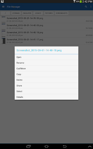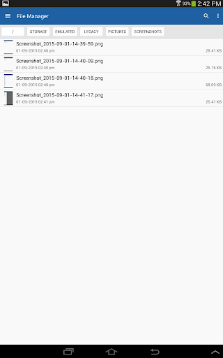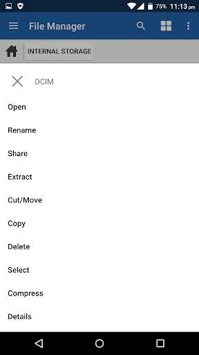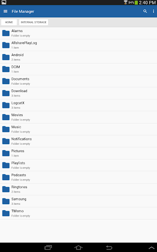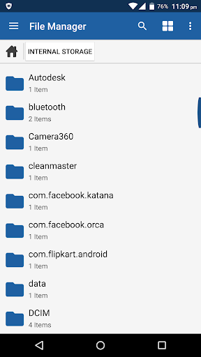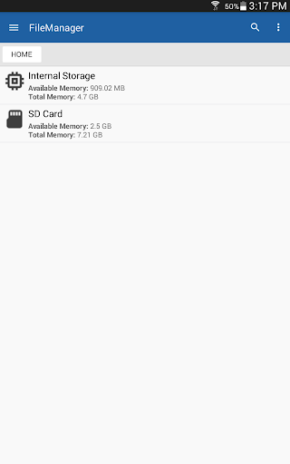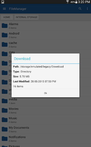 File Manager allows you to browse your Internal Storage and SD card, gives you options to create directories, rename, copy, move, delete files and many more features.