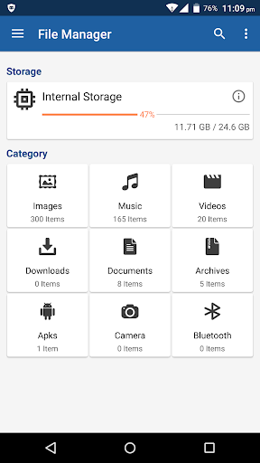 ★ Shows categories on Home Screen (Like: Images, Videos, Music, Downloads, Archives, Apks, etc.)