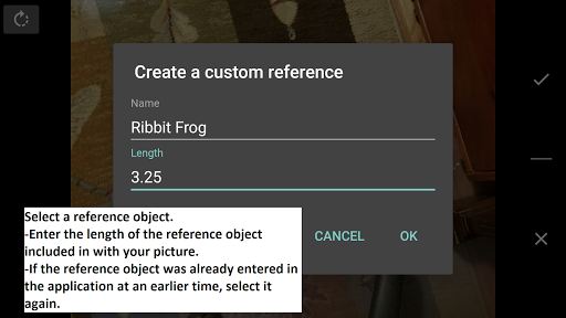 Even if the reference object has already been used before and is saved in the app, you must always measure the reference object in the picture, so we know what the scale is.