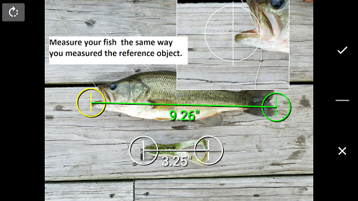 All the angler has to do it snap a quick picture with the reference object (can be knife, pliers, lure, part of your reel, part of your rod, wedding band, etc.) included in the picture, and then they can weigh and measure anytime thereafter.