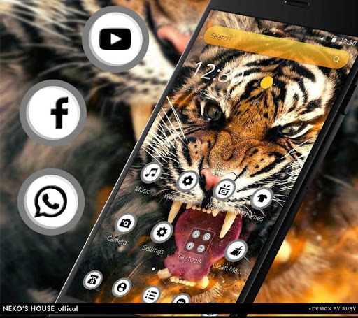 -😍Free Flaming Fire Roar Tiger Theme designed for Launcher users technically. Amazing cool 3D transition effects and technology will let you hardly tear yourself away from it.