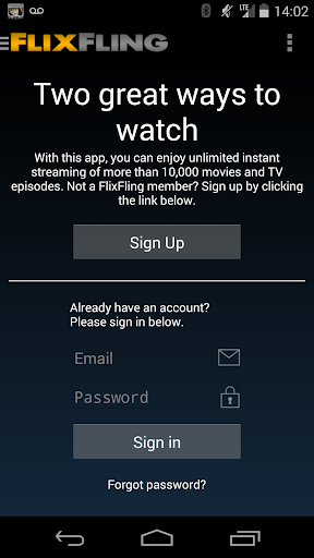 - Use your existing FlixFling account on your Android Device.