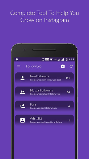 Apart from above all features like Follow, Unfollow, Non-Followers, UnFollowers, Fans, Mass Unfollow, Mutual Followers, Multiple Instagram Account, the simple reason to use this Follow Lyo app is due to it's simplicity which not only make you do more with your Instagram profile but also help you find, track and grow quickly with less time.