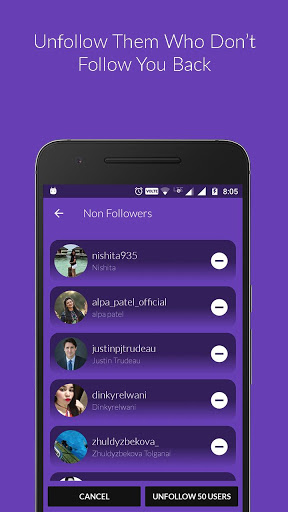 With this non followers app, you can not only track your non-followers and fans but also unfollow or follow them directly using the app respectively. This is the most unique unfollow app for Instagram.
