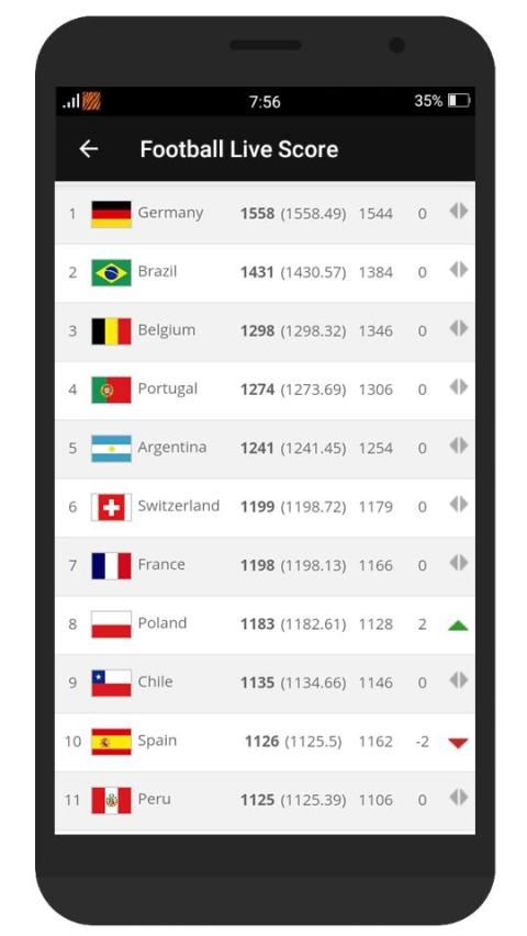 Get Live Scores & Tables From Every Football/Soccer Compititions In The World, Like -
