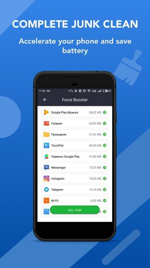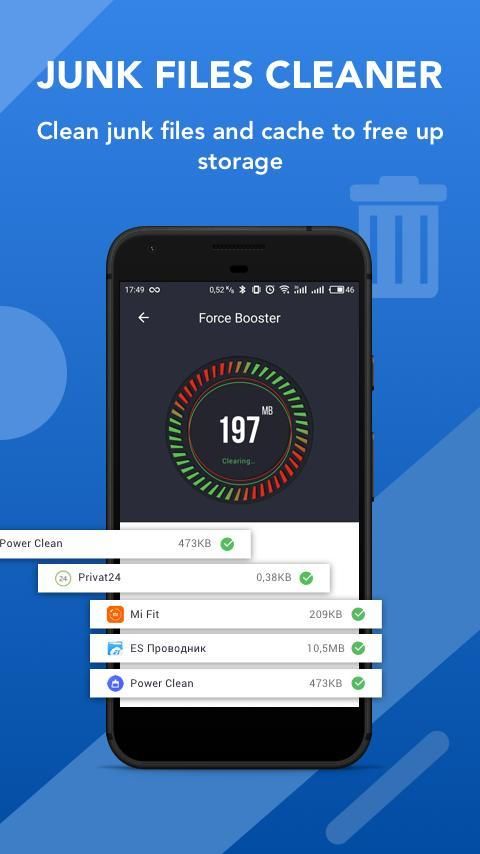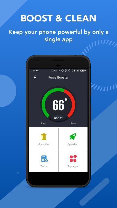 Force Cleaner & Booster will help you to free up storage, boost RAM and disable unnecessary apps running in background.