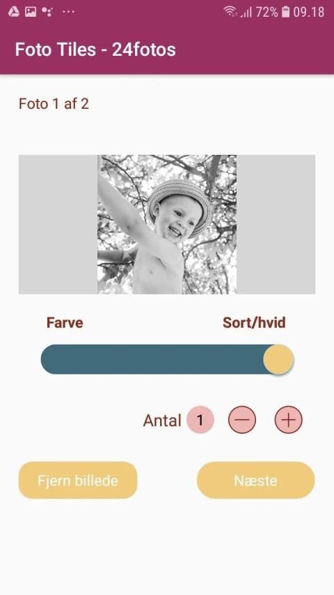 Bestil dine Foto Tiles direkte via appen, så kan du lave en flot fotovæg med dine minder om få dage.
