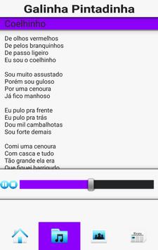 Do you love the song Galinha Pintadinha? This application is your solution to listen to Galinha Pintadinha music, in this application there is a usefull the lyrics and artist information.