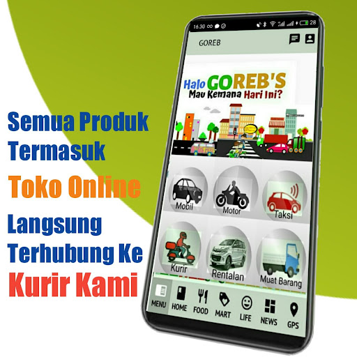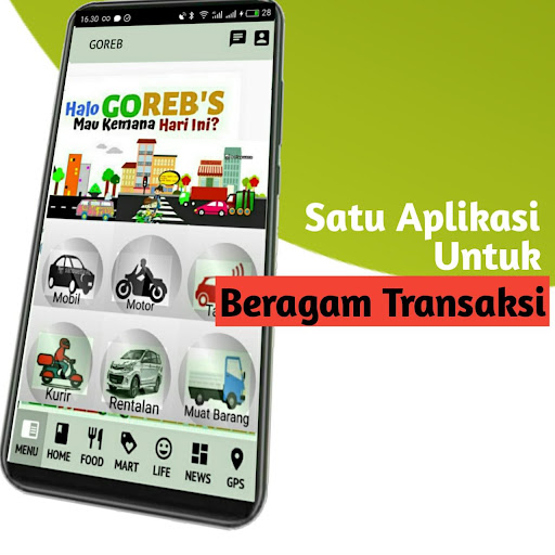GOREB - Aplikasi Pemesanan Ojek, Mobil, Taksi, Kurir, Mobil PicUp, Rental Mobil & Toko Online Dalam Satu Genggaman.