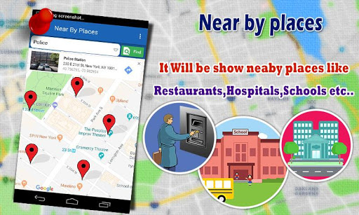 Easily find nearby places like ATM, banks, restaurants, hospitals, petrol bunks, pharmacy, etc.