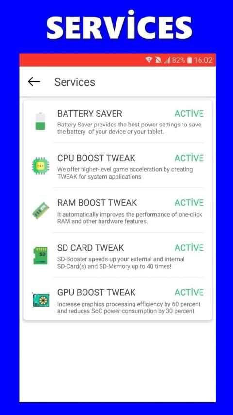 Kills unnecessary tasks and apps and frees up memory by just a tap.