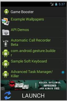 Start the app and select the android game you want to boost then click launch. On the next screen slide the slider to select the amount of free memory you want. After selecting click on boost. The selected game will launch automatically.