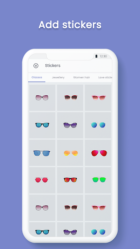 10) Add stickers from the sticker section of the app. The sticker section presents a wide range of stickers ranging from women & girl watches, women & girl sunglasses, women & girl hats, women & girl bracelets, women & girl airings, etc.