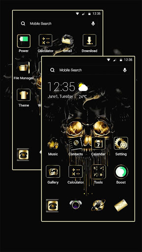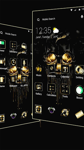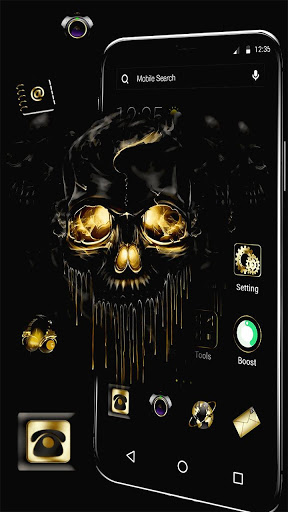 Gold Black Horrific Skull Theme is not only a Gold Black Horrific Skull Theme live wallpaper, but also is a great launcher app with more amazing features.