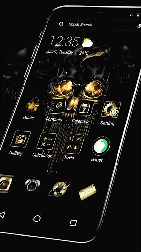 Gold Black Horrific Skull Theme is the wonderful Wallpaper theme and Launcher app available for your phone. If you love skull people or Fantastic design, the Gold Black Horrific Skull theme will never disappoint you.