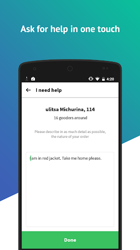 With the help of Gooder you can always view requests for support and then help someone nearby who is in a difficult situation. Be the fastest who takes request and makes it.