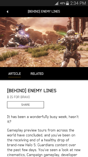 Halo 5: Guardians is here, and the Halo Channel is the official companion app for the highly-acclaimed Xbox One title, letting you enhance your game experience with access to a robust suite of stats, post-game reports, and more. The Halo Channel lets you experience award-winning original Halo programming – including compelling additions to the Halo fiction and exclusive behind the scenes documentaries – as well as game-focused content such as competitive multiplayer strategies straight from pro players, tips and tricks to tackle everything from challenging campaign walkthroughs to record-breaking speed runs, the best in community-created content, and much more. Plus, you can access your favorite Halo news and blog content, and explore the deeper details of Halo’s story, characters, vehicles, locations, and more thanks to direct access to the Halo Universe encyclopedia – all through a custom-designed and personalized digital network. This is your home for Halo.