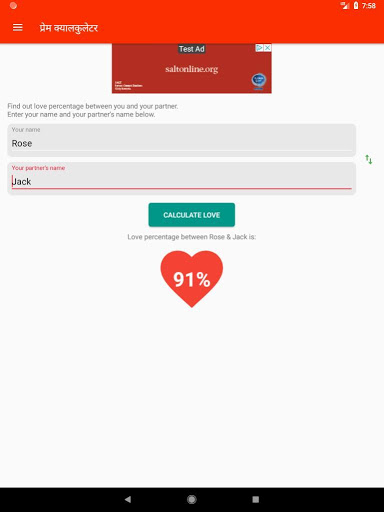 ✔ Unique algorithm to calculate love percentage.