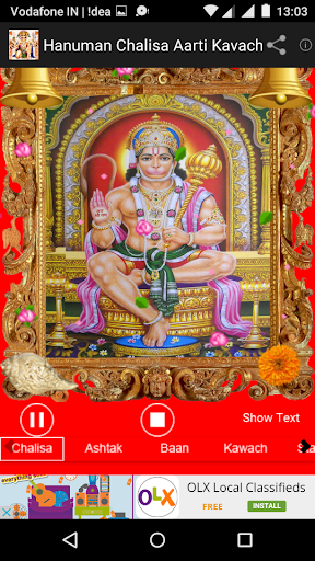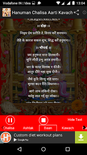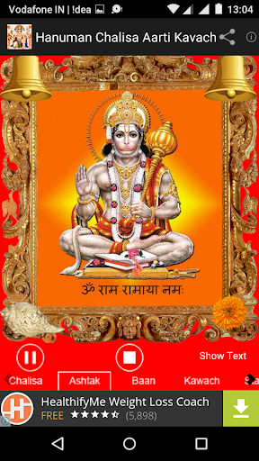 This application is a combination of Hanuman Chalisa, Hanuman ji ki Aarti and Hanuman Kavach.