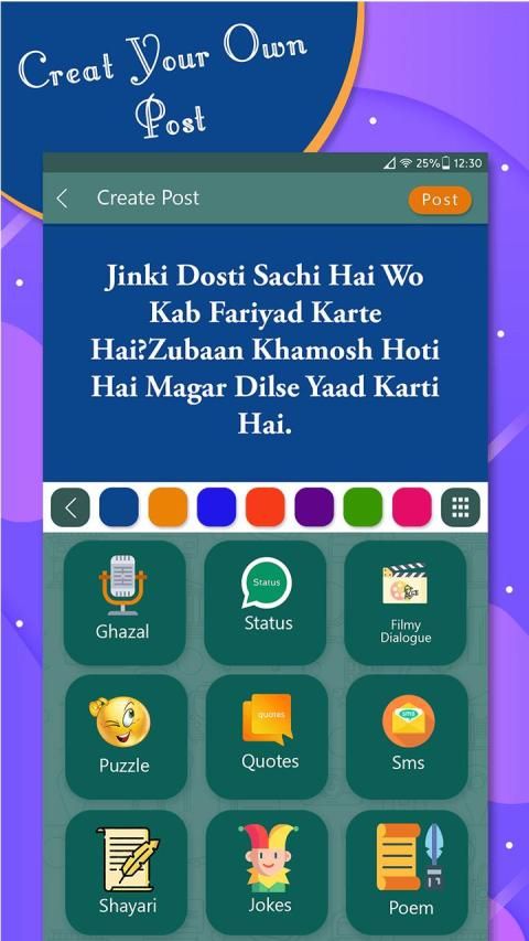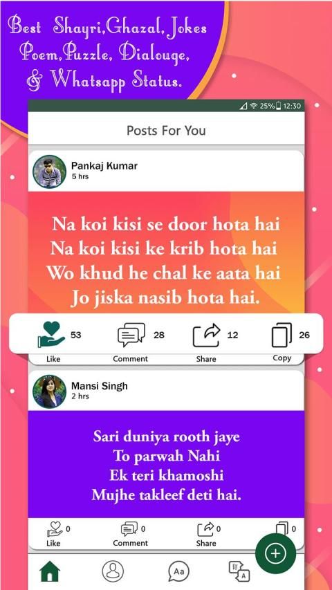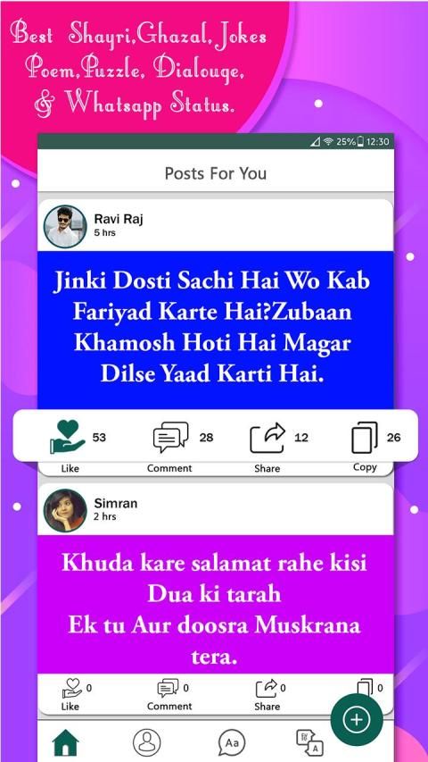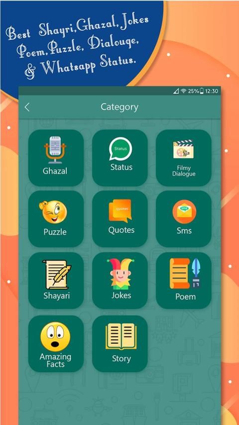 - Filmy Dialog, Jokes, Shayari, Poems, Amazing Facts, Quotes,Status, Puzzle, Ghazal, Stories in single app.