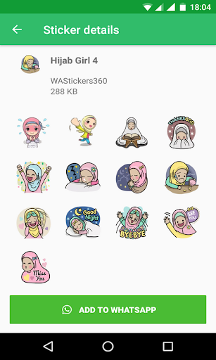 Hijab Girl Stickers for WhatsApp 2019 HD awesome Hijab Girl Stickers 2019 is Compatible with all android devices like Samsung Galaxy S3, Note, HTC Desire S, Sony Xperia S, Oppo, APUS, Samsung Galaxy Note 8.0, Vivo - Smartphone, Moto Razr XT910 and Nexus 5, Nexus 7, samsung Galaxy, Nexus, Wiko, Samsung 7,Huawei P10 , Smartphone, Tablet, samsung Galaxy, Nexus... you will find in this app: Free hijab girl Stickers for Whatsapp, hijab girl Stickers for Whatsapp free, Romantic hijab girl Stickers for Chat, Cute Hijab_Girl Stickers for Chat, muslimah Stickers for Chat, Emoji hijab girl Stickers for Chat, hijab girl Feelings Stickers for Chat, Sad Stickers for Chat, Sad Girl Stickers for Chat, Happy hijab girl