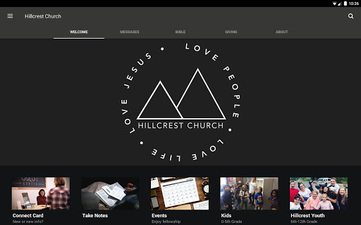 This app is packed with powerful content and resources to help you grow and stay connected at Hillcrest. With this app you can: