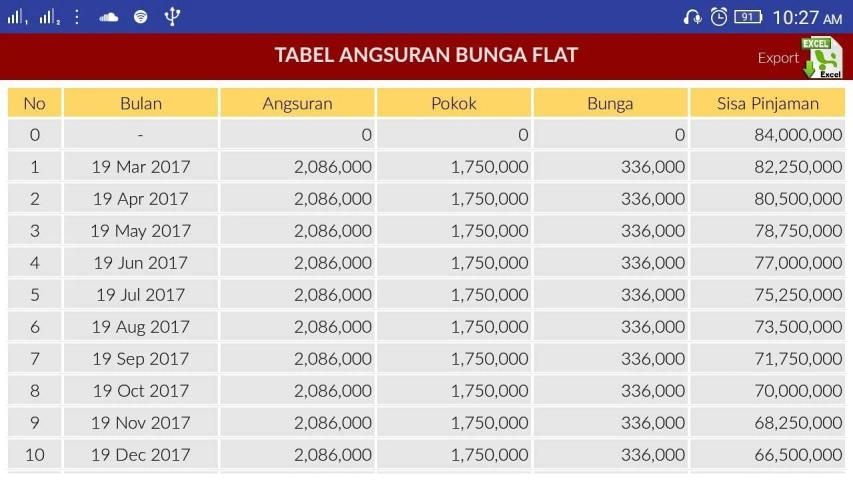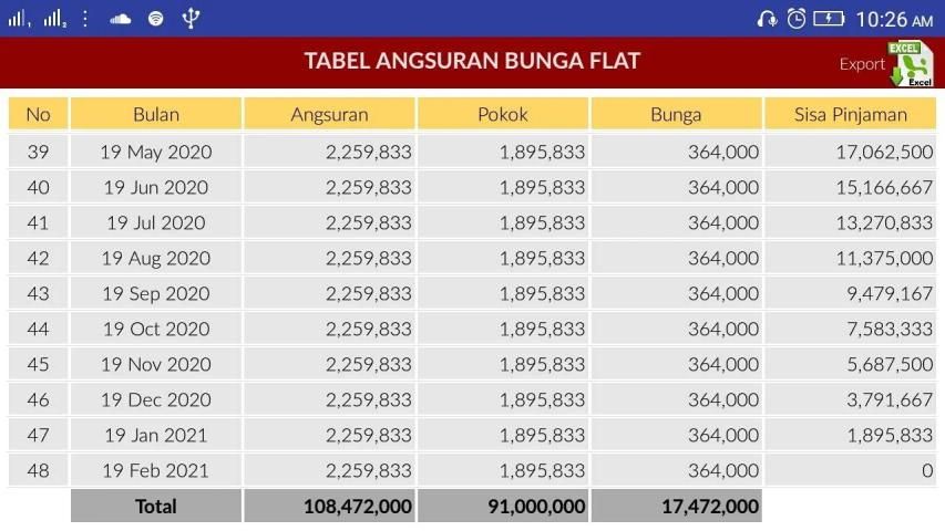 Aplikasi ini juga dapat mengexport/simpan tabel angsuran hasil dari perhitungan ke file Excel.