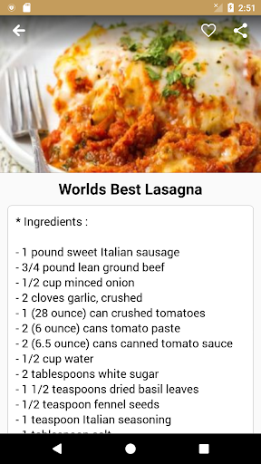 3- Add any recipe to your favorite list for ease of access