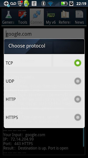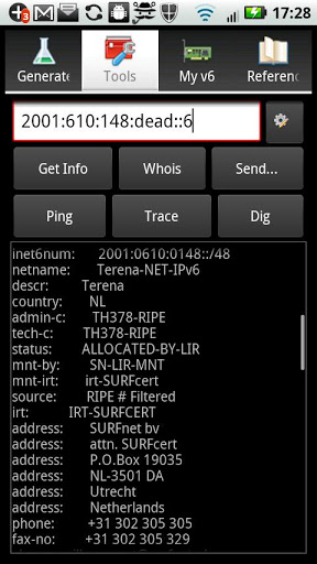 'IPv6 and More' is an essential, ad-free app for network engineers, system administrators and computer geeks interested in IPv6, IPv4 and transition mechanisms from v4 to v6. The app also includes all the standard IP tools and tcp/udp/http/https testing. Some important features are: