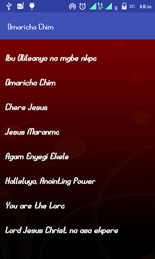 Omaricha Chim (My Beautiful God) includes the following songs;