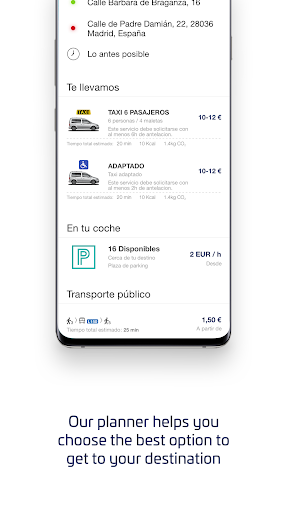 Choose where you want to go and the app will show you all the possibilities you have : taxi, bus, moto-sharing or even compare prices and availability of nearby parkings and regulated parking in case you choose your car.