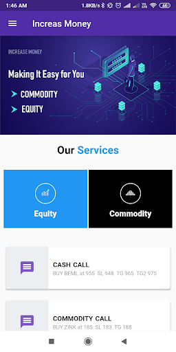 Increase Money app provide you with the best of these services - share market tips, Equity tips in NSE ( cash, option & future) commodity tips in MCX.