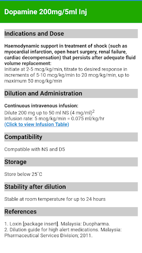 - Infusion table of dopamine, dobutamine, noradrenaline, esmolol