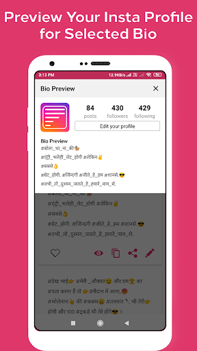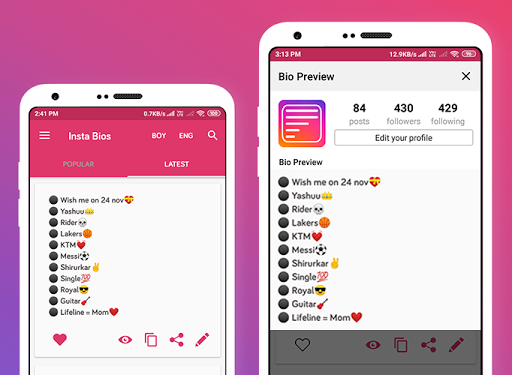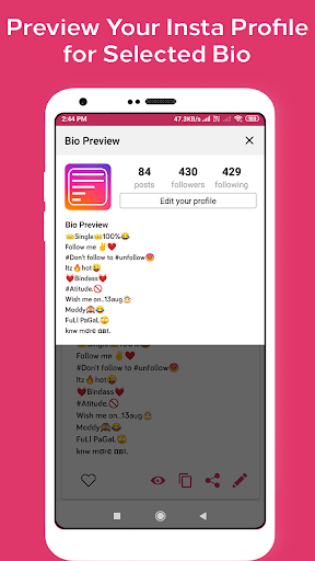 So Get instant attraction to your instagram profile and gather more friends to your instagram. Use insta bio app to win the heart of your friends on instagram and let them share your instagram profile with their friends and get organic followers to your instagram profile.