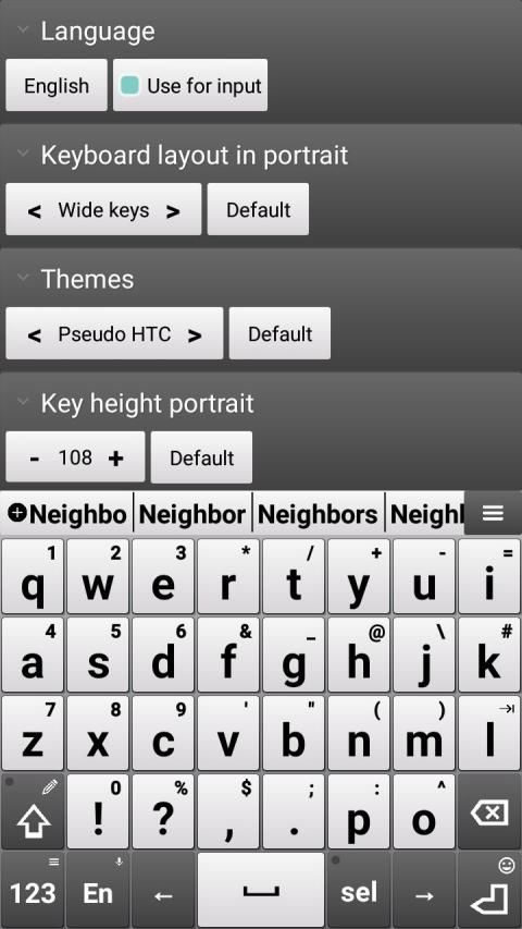 Keyboard is very small but has many functions and settings. Here you can find many keyboard layouts for more than 60 languages. For 30 languages you can download dictionary and it gives additional features: text input using gestures, word corrections.