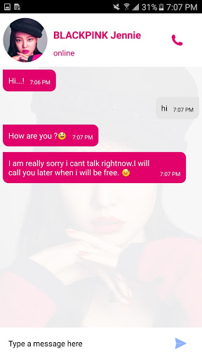 Are you admirer of Jennie From the FAMOUS BLACKPINK? Wanna Chat with her? Well This app is for you. It will give you a joy of talking with your favorite star "Miss Jennie". Though its a prank app, you will not feel prank like thing in it. This app has been