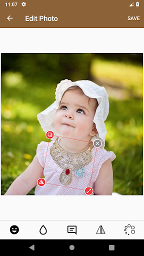 - Rotate, resize tattoos on your photo and save your photo with jewellery.