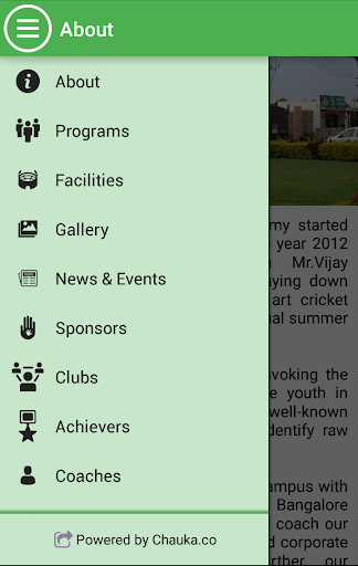 Providing state of the art facilities and quality cricket coaching along with cricketing values to the young cricketers aspiring to reach the highest annals of the game.