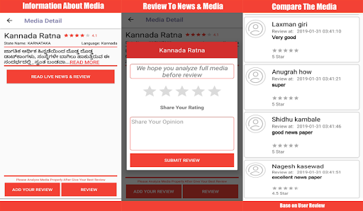App Is providing the user review audit and rating system, User Can Upload the media and News and others will provide his opinion and rating on News and media with the rating.