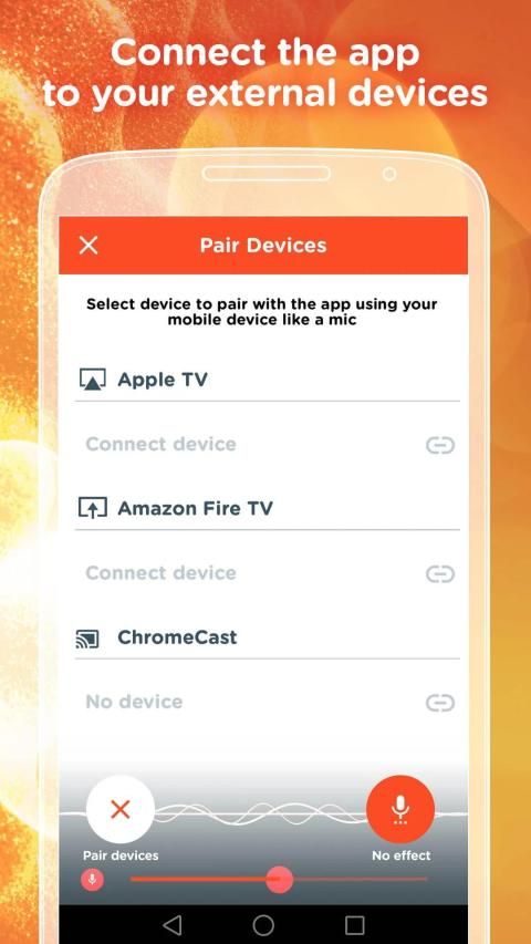You can connect Karaoke Party app for free to many devices: ChromeCast, AmazonFireTV, LG WebOS smartTV, Bluetooth devices and of course to any external speaker with the minijack port.