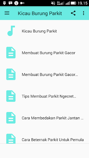 Isi Aplikasi Kicau Burung Parkit Terbaru :