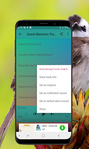 Kicau Burung Trucukan Offline adalah aplikasi yang berisi kumpulan suara burung trucukan yang digunakan sebagai masteran dan juga sebagai pancingan atau memikat burung trucukan lainnya.