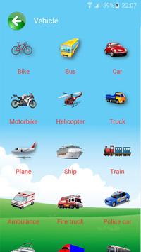 English for Kids Learn is a game for kids that are designed with education purpose. This fun game will help kids to learn the sounds and name in English of alphabet, number, color, animals, flower, fruit, vegetable, clothes, food, tool, vehicle, school, shape, house, country, sport, transports, musical instruments. Beside sounds, we also provide object names in English. So, through this sounds game your kids can learn and remember new word better and pronounce correctly.