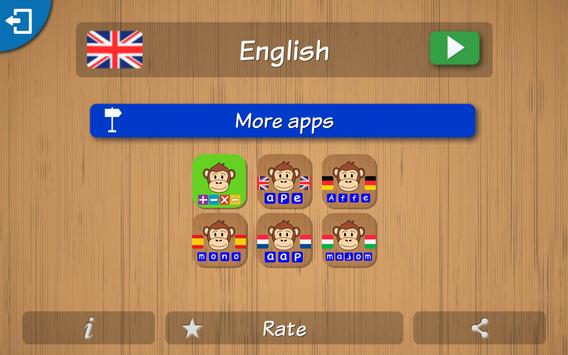 1) Spelling exercise, spelling English words: a picture is shown for each word with the letters of the word in a random order. Guess the word and place the letters below the image in the correct order,