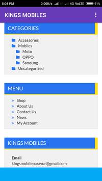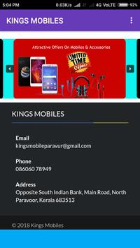 Kings Mobile is one of the No.1 margin free mobile shop in north paravur. This app is developed for sharing information about our new Mobiles & Accessories offers and details.