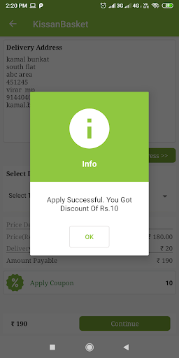 * Coupon Code - Special Discount on every order value