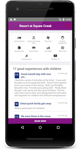 - For every accommodation property, our app will show you only the comments from families that had experiences with kids. So you will not need to dig into hundreds of irrelevant comments about pillows anymore.