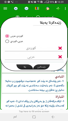 تم و بحمدالله إصدار النسخة الألكترونية من التطبيق بغرض معرفة و فهم و ترجمة الكلمات للمتحدثين باللغة العربية واللغة الكردية..