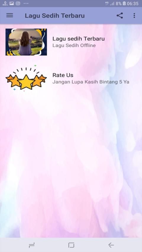 Aplikasi ini sangat cocok buat anda karena dapat menemani kesendirian dan menghibur suasana hati anda, ada banyak lagu lagu sedih dan lagu lagu galau pilihan yang bisa anda pilih sesuai suasana hati anda yang dibawakan oleh artis atau grup band ternama.