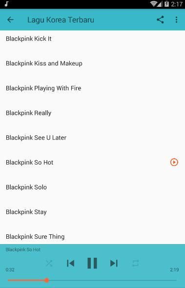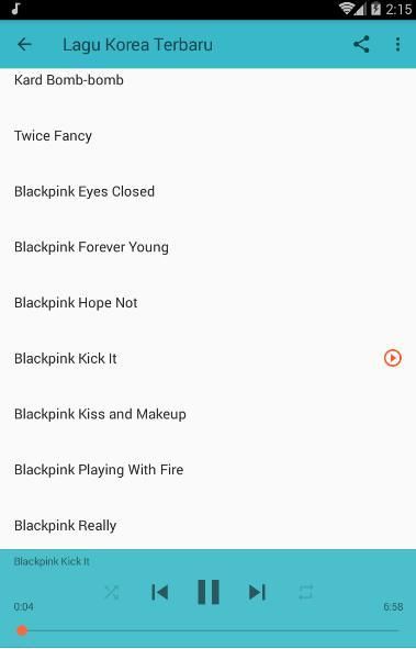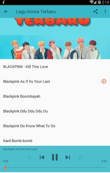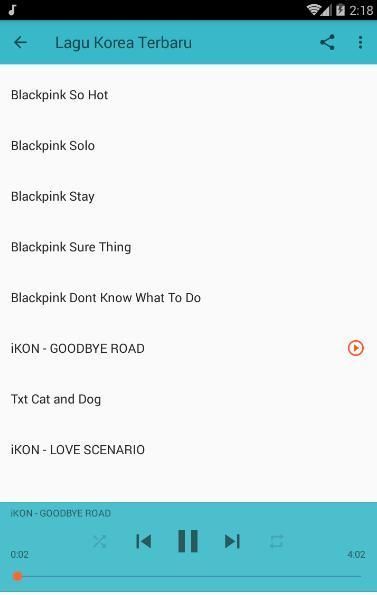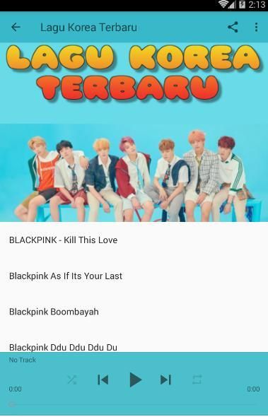 This application contains the latest complete Korean songs nice to hear. In addition, this application is very light so it does not drain your internet quota, you can listen to this song anytime and anywhere.